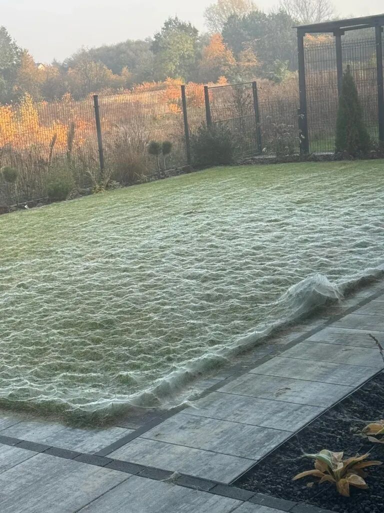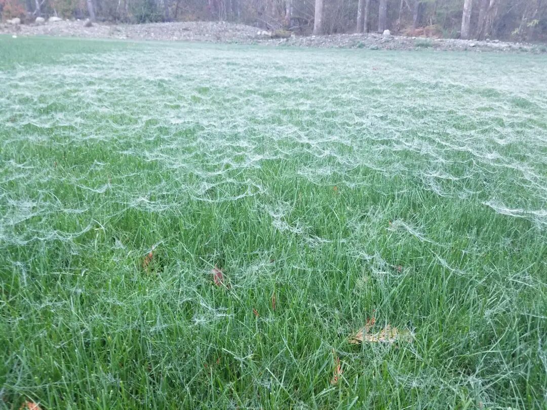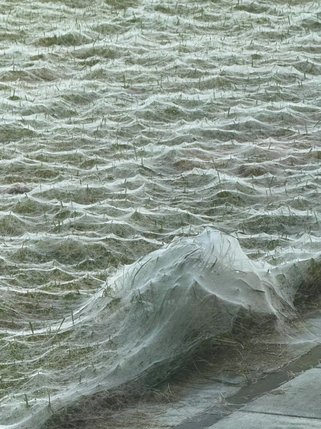 然则,当他推开前门时,目下的风物让他片刻愣住了——通盘草坪被一层庞大的蜘蛛网笼罩,宛如恐怖电影中的场景。这刹那间,28岁的马切伊确凿要惊叫出来。天然他心里理解这是天然风物,但“整片草坪被蛛网隐敝”的视觉冲击,足以让任何东说念主心跳加快。