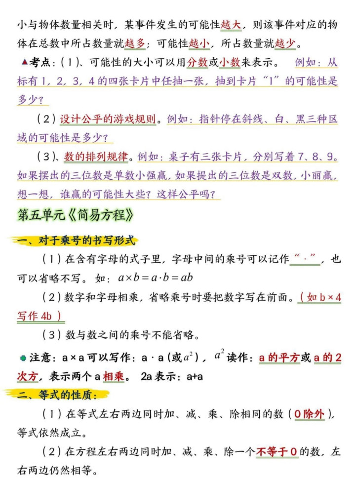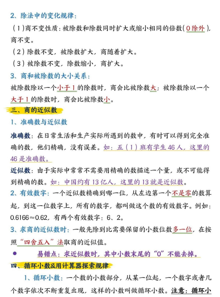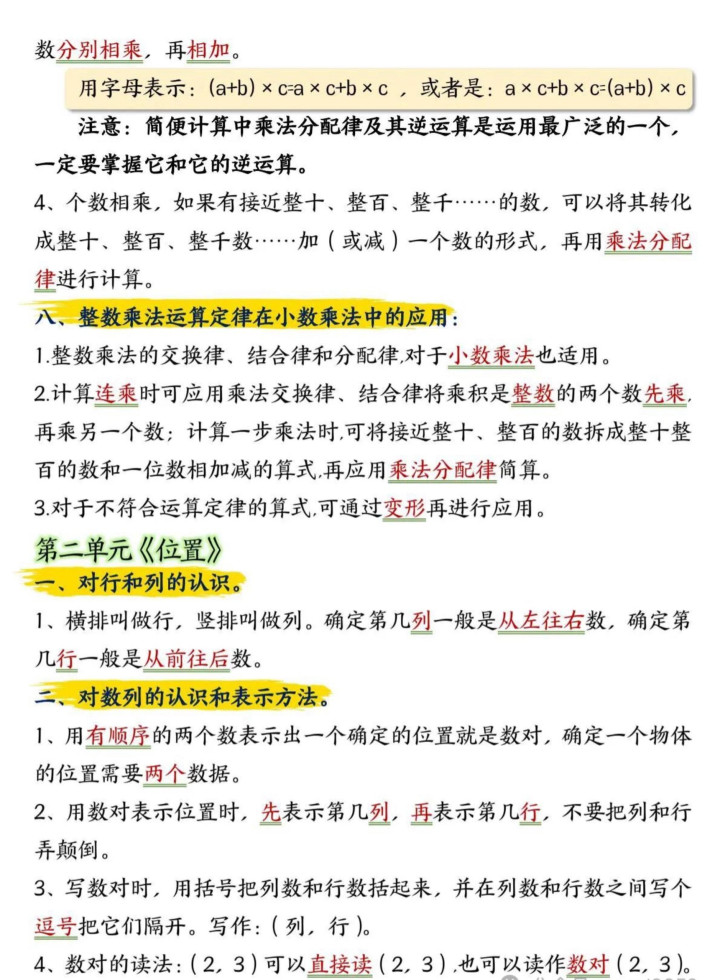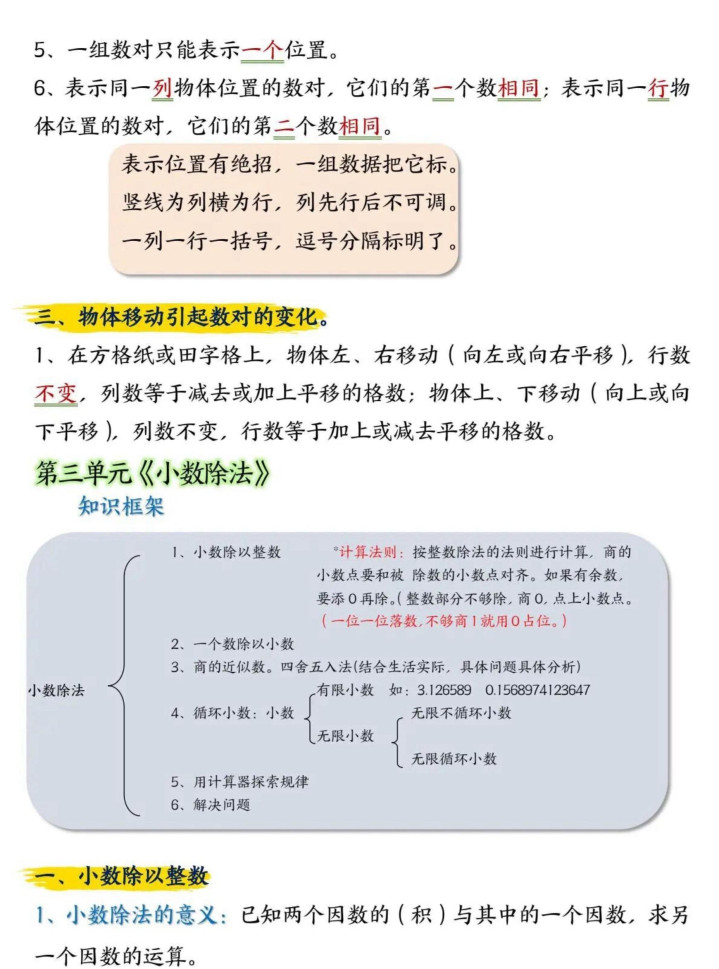 小学五年龄上册数学常识汇总整理。如有需要不错下载打印